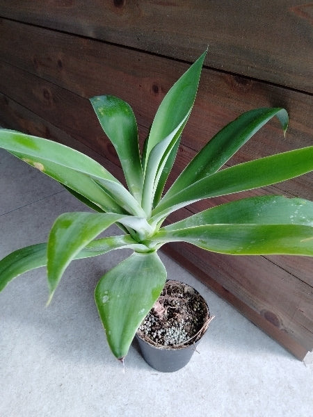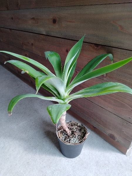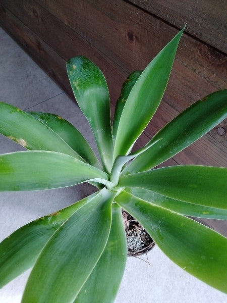 鋭くとがったイメージの多いアガベの中で、ひときわ柔らかく優美な印象を持つ。剣のように見えて実はトゲがなく、ふんわりとカーブを描く葉がロゼット状に広がります。モダンでナチュラルな空間にもよく合い、観葉植物や庭木として高い人気を誇ります。