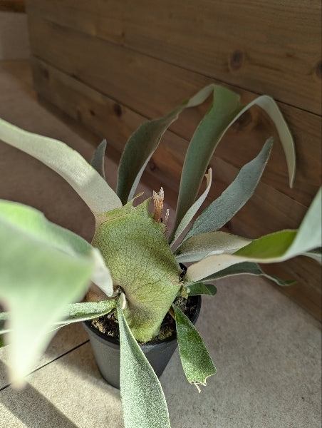 コウモリラン・ビーチーは、そのユニークな形状と魅力的な葉で人気の観葉植物です。葉は長く垂れ下がり、独特の形をしており、インテリアに自然なアクセントを加えます。特に壁掛けやハンギングプランターに最適で、お部屋の空間を立体的に演出します。育てやすく、耐陰性もあるため、初めて植物を育てる方にもおすすめです。