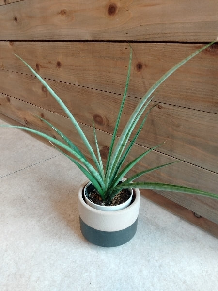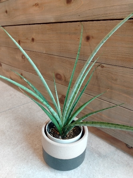 サンスベリア・ウィッチャゴールドは、明るい黄緑色の葉が特徴的な観葉植物です。日光を好みますが、半日陰でも育てることができます。乾燥に強く、水やりの手間が少ないため、忙しい方でも育てやすい植物です。インテリアとしても人気があり、モダンな空間にぴったりです。オフィスやリビングに置いて、空気を浄化しながら、スタイリッシュな雰囲気を楽しめます。