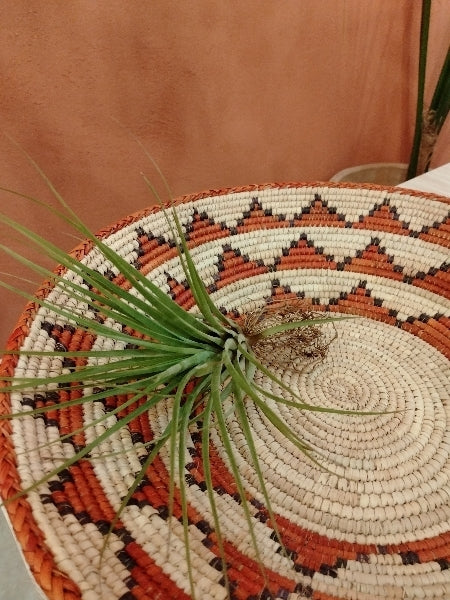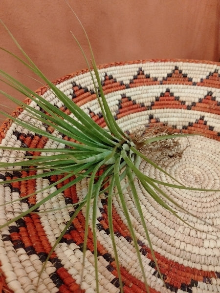 チランジア・フラボブラクテアータは、エアプランツとして人気のある観葉植物です。鮮やかな緑色の葉と美しい花穂が特徴で、室内のインテリアに彩りを加えます。この植物は土を必要とせず、空気中の水分を吸収して成長しますので、手間がかからず初心者にもおすすめです。適度な光と湿度を好み、日光の当たる場所に置くとより美しく育ちます。定期的な霧吹きで水分を補給してあげましょう。