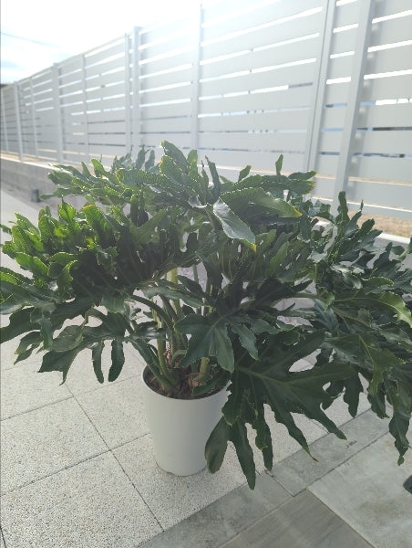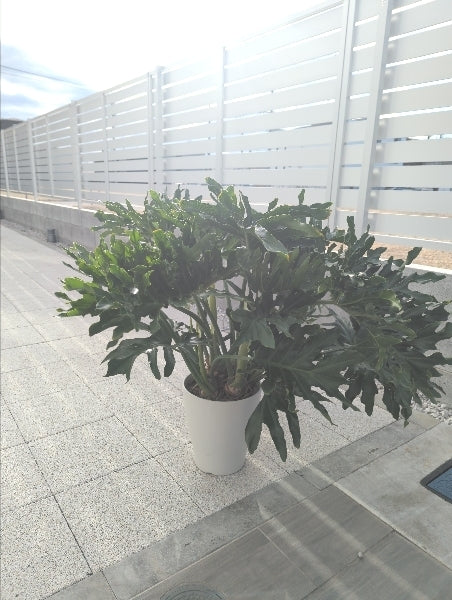 セロームは、大きな深い緑色の葉を持つ美しい観葉植物です。特にその葉の形状が特徴的で、切れ込みが入ったユニークな姿をしています。室内でも育てやすく、適度な日光と水を提供することで長く楽しむことができます。また、空気浄化効果も期待できるため、お部屋の環境をより良くしてくれます。シンプルでモダンなインテリアにもよく合い、緑を取り入れたい方におすすめです。