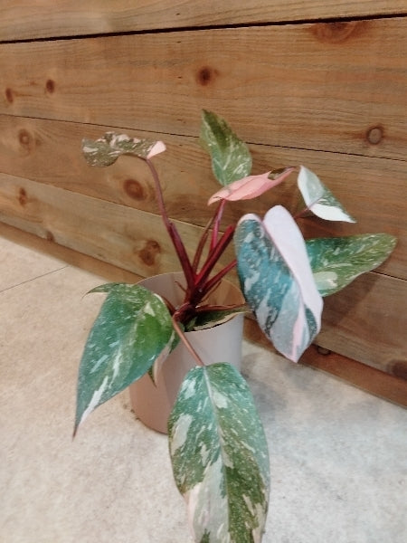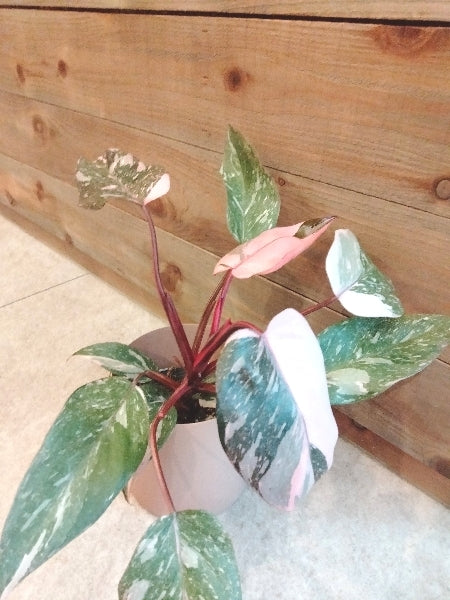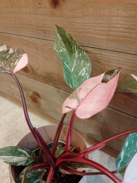フィロデンドロンピンクブリンセスは、その美しいピンクと緑の葉が特徴の観葉植物です。エレガントでモダンなインテリアにもぴったりで、室内の雰囲気を明るく彩ります。比較的育てやすく、初心者でも安心して楽しめる植物として人気があります。半日陰を好みますが、明るい間接光でも元気に育ちます。