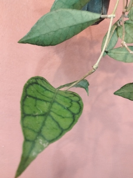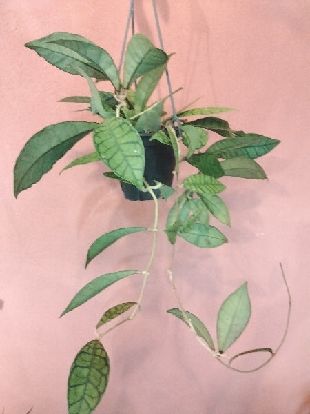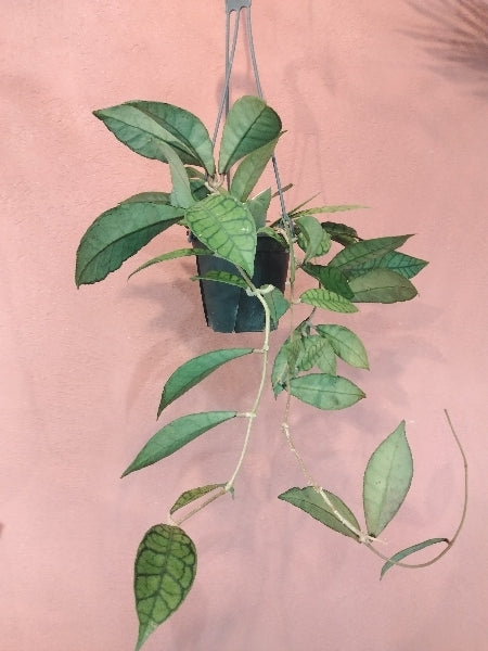 ホヤ・カリストロフィラは、濃い緑色の葉に独特の模様が特徴的な観葉植物です。肉厚で光沢のある葉は、インテリアにエレガントな雰囲気を加えます。室内でも育てやすく、適度な日光を好みますが、日陰でも問題なく成長します。乾燥にも比較的強く、初心者でも安心して育てられるため、観葉植物として非常に人気があります。