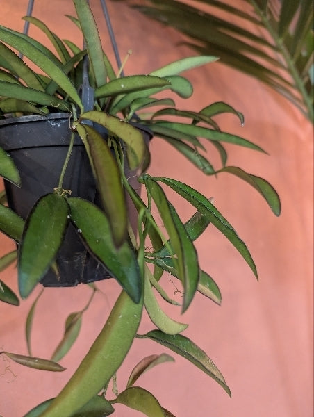 ホヤ・チャイナビーンズは、厚みのある葉と美しい花を持つ人気の観葉植物です。光沢のある緑色の葉は、インテリアに自然なアクセントを加え、エキゾチックな雰囲気を演出します。適度な湿度と明るい間接光を好むため、室内での育成がしやすいです。耐乾性があり、水やりの頻度を控えることで手軽に育てることができます。初心者の方にもおすすめの植物です。