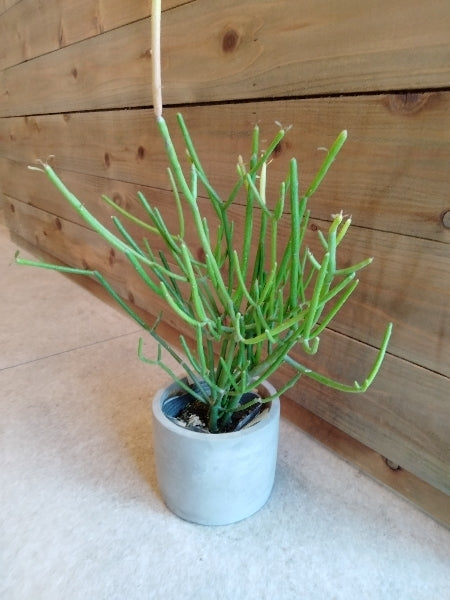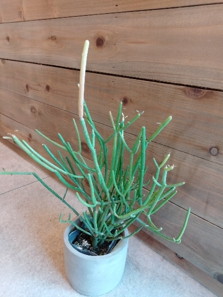 ミルクブッシュ・ファイアスティックは、その鮮やかな色合いとユニークな形状でインテリアを彩る、人気の観葉植物です。細長く伸びる枝は、季節によりオレンジや赤に変化し、まるで炎のような美しさを演出します。手入れが簡単で、日光を好み、乾燥にも強いため、忙しい方にもぴったり。アート作品のようなその外観は、室内空間に個性的なアクセントを加えます。