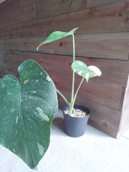 モンステラ・タイコンステレーションは、独特の斑入り模様が美しい観葉植物です。その大きな葉とユニークな模様は、どんなインテリアにも映えることでしょう。比較的育てやすく、日陰でも順応するため、観葉植物初心者にもおすすめです。ただし、直射日光を避け、明るい間接光を好む環境で育てると良いでしょう。定期的な水やりと適切な湿度管理で、健康的な成長を促進します。