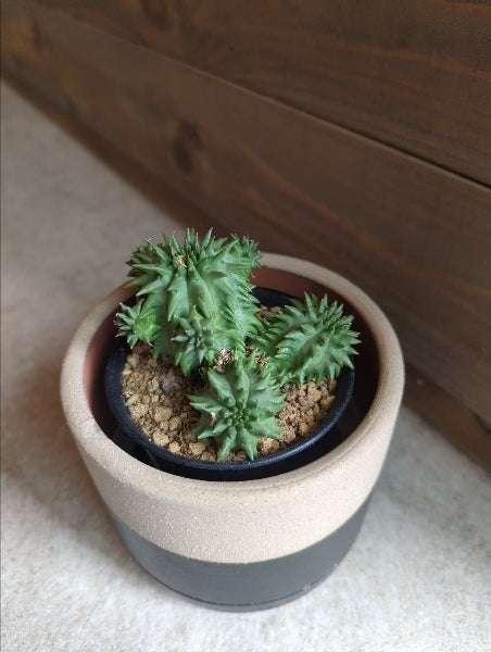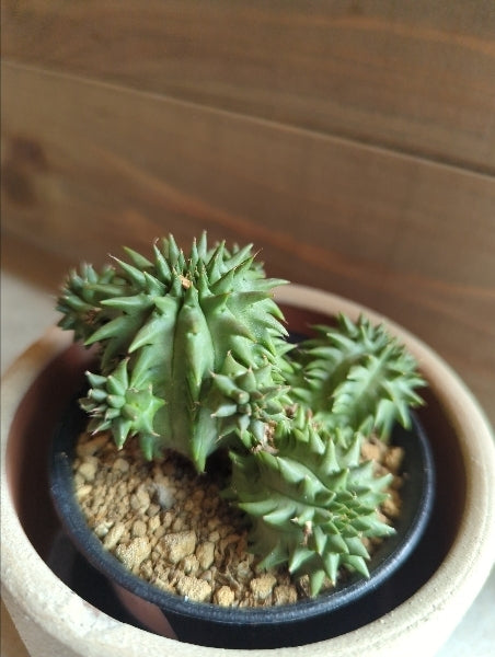 ユーフォルビア・ルリコウは、その独特な形状が特徴の観葉植物です。ユーフォルビア属の中でも人気のある品種で、インテリアに取り入れることでお部屋にナチュラルでスタイリッシュな雰囲気を演出します。手間のかからない育てやすさも魅力の一つで、初心者の方にもおすすめです。適度な水やりと日光を心がければ、健康的に成長します。