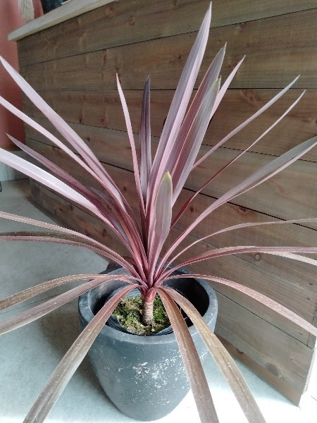 コルジリネ・レッドスターは、その美しい赤褐色の葉で人気のある観葉植物です。細長い剣状の葉が放射状に広がり、インテリアにモダンな印象を与えます。耐久性があり、屋内外で育てることができるため、初心者にもおすすめです。適度な日当たりを好みますが、半日陰でも育成可能です。室内にアクセントを加えたい方にぴったりの一品です。