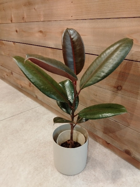 フィカス・バーガンディーは、その美しい深い緑と赤みを帯びた葉が特徴の観葉植物です。インテリアにモダンなアクセントを加え、空間をスタイリッシュに演出します。手入れも簡単で、少ない日光でも育つため、忙しい方や植物を育てるのが初めての方におすすめです。乾燥にも比較的強く、室内の環境に適応しやすいので、オフィスのデスクやリビングにもぴったりです。