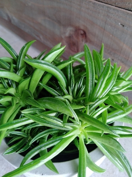 ペペロミア・ハッピービーンは、そのユニークな葉の形状と明るい緑色が特徴の観葉植物です。細長い葉は豆のような形をしており、インテリアのアクセントとして人気があります。コンパクトなサイズで、デスクや窓辺にぴったりです。比較的育てやすく、適度な水やりと明るい間接光を好みますが、多少の日陰でも順応します。初心者にもおすすめの一品です。